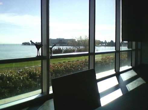 The work place itself offers space for lovely day dreaming as the glass pane windows along the back facade face the bay directly. The employee cafeteria is spacious. The company provides ample free food daily, including three kinds of fresh fruit, organic energy bars, organic yogurt, organic juices, and various healthy snacks and bottled drinks. Free Peet’s coffee is brewed early in the morning.