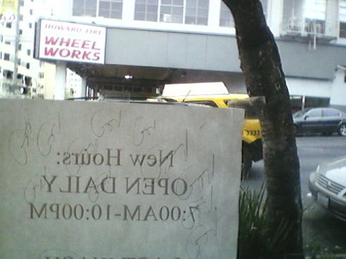 Graffiti on a laundromat sign, Post and Franklin.