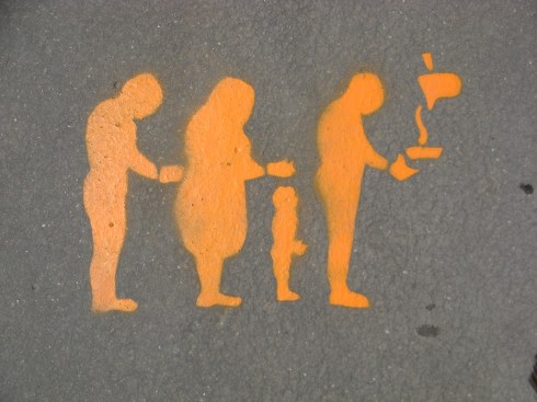 David Duckworth, Soup Line. Acrylic, 2012. Stencil executed by Philippe Barnoud on bridge near Paris University 8, Saint-Denis, for exhibition, Écritures en migration[s].