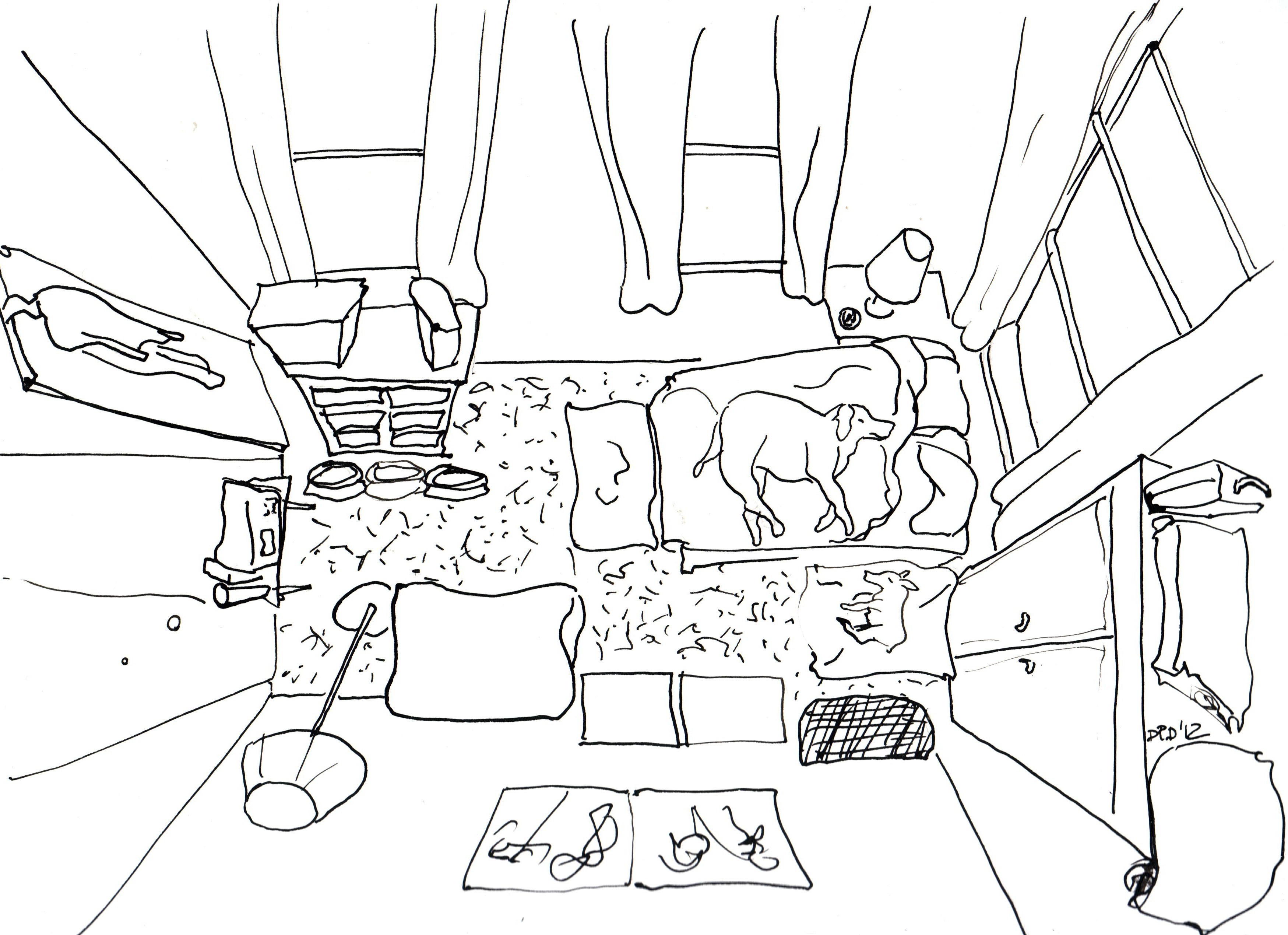 I doubt that the dogs were aware of any of this. I rarely saw them exhibit much energy as we occupied the room, nor much interest in the sounds of the hotel. They were eager for the one or two daily walks to the park their owner led them on. Sugar sometimes objected to being left alone as I did hear her scratch against the door after my departure one morning. What depressed me that day had nothing to do with Sugar shitting or Tucker peeing on the carpet, which did not occur then but did happen often enough. No, it was the realization that the dogs slept all the time.