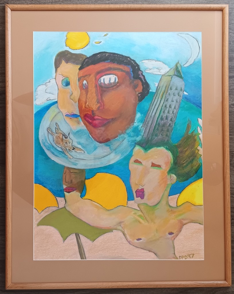 Two Faces. Oil pastel on Bristol paper, 1987.