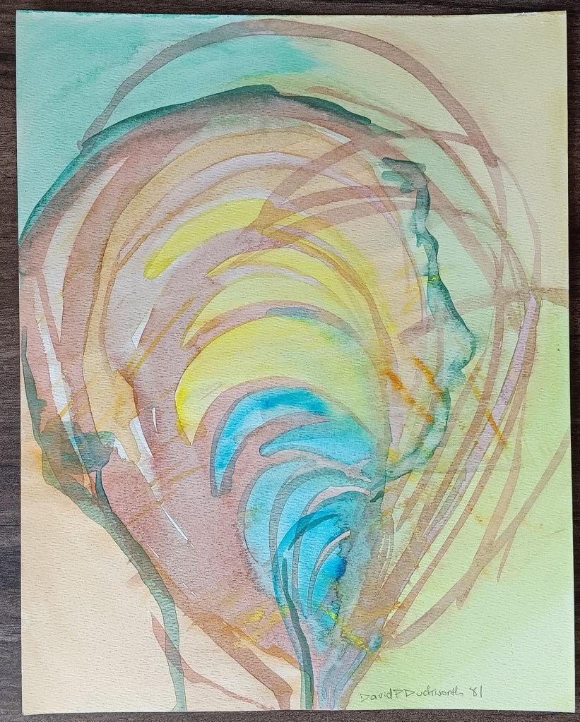 The unframed works I chose to sell at this neighborhood walk event were kept in a portfolio case in storage. I had not looked at them for years. But, they appeared as fresh as the day I created each one. They also provided a perspective I had vaguely thought about over time. They represent a transition for a beginning artist. Although I had explored art to a limited degree during high school, I enrolled in an art program at Immaculate Heart College in Los Angeles. It was a most enriching experience. The watercolors represent that two-year period.